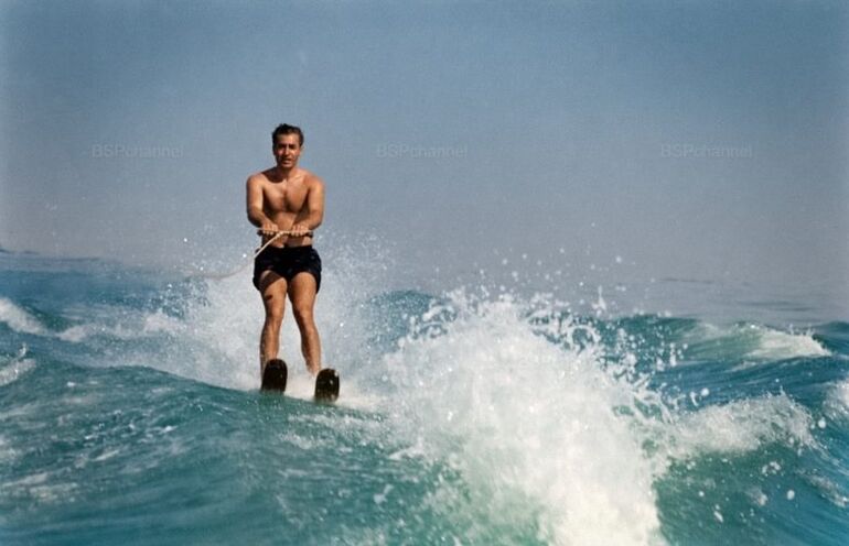 Шах Ирана Мухаммед Реза Пахлави на водных лыжах во время своего отпуска в Майами-Бич, штат Флорида, 1955 год.