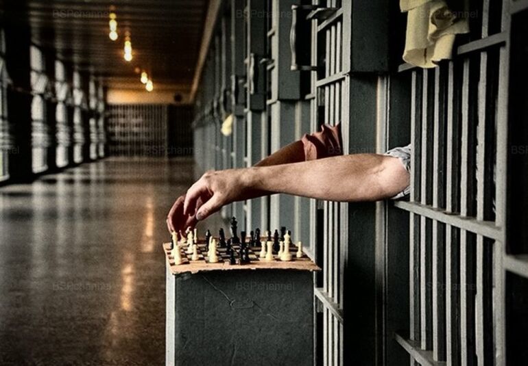 Проведение времени за игрой в шахматы в исправительном учреждении Аттика в Нью-Йорке, 1972 год.