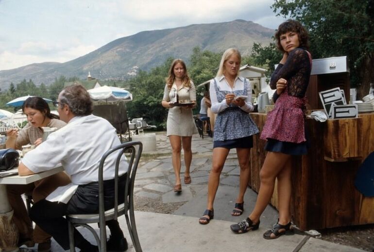 Официантки на террасе ресторана. Аспен, Колорадо, 1970-е.
