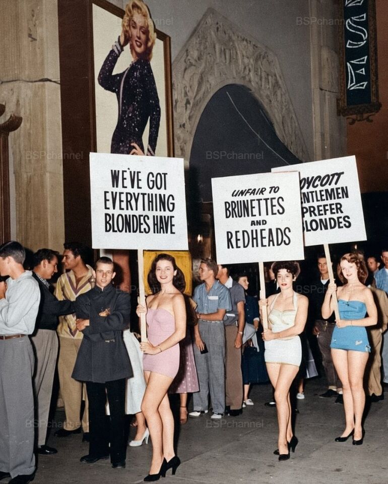 Организованный протестный марш в Голливуде, рекламирующий фильм 1953 года «Джентльмены предпочитают блондинок».