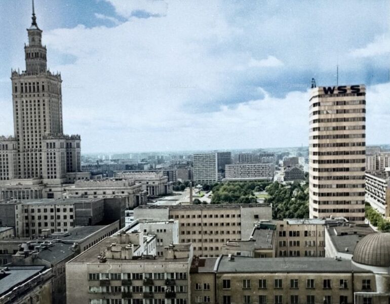 22 июля 1955 года в Варшаве был торжественно открыт Дворец культуры и науки — 42-этажный небоскрёб, подаренный польской столице Советским Союзом. Изначально здание носило имя И. В. Сталина, но после XX съезда КПСС и последовавшей десталинизации это название было убрано. Здание до 2022 года оставалось одним из самых высоким зданием не только Варшавы, но и всей Польши. Архитектурно Дворец выполнен в стиле так называемых «сталинских высоток»: монументальный, украшенный лепниной, шпицем и соцреалистической символикой. С 1955 по 1957 год оно было самым высоким зданием в Европе, а и сегодня входит в десятку самых высоких небоскрёбов Европейского союза. Подарок «от братского советского народа» строился с 2 мая 1952 по 22 июля 1955 года силами 3500 советских рабочих и инженеров. Для них специально был возведён целый микрорайон с кинотеатром, столовой, клубом и даже бассейном, чтобы обеспечить быт и досуг строителей вдали от родины. Хотя для многих поляков Дворец культуры и науки до сих пор остаётся спорным символом советского влияния, невозможно отрицать его масштаб, историческую значимость и роль в современной жизни Варшавы.