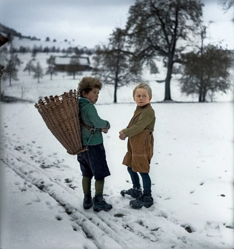 Перевозка грузов на конной повозке. Лётшенталь, Швейцария, 1941 год.