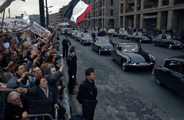Фотограф: В. Володкин. В мае 1960 года Никита Сергеевич Хрущёв — Первый секретарь ЦК КПСС и Председатель Совета Министров СССР — совершил официальный визит во Францию, ставший одним из самых ярких эпизодов советской дипломатии эпохи «оттепели». Хрущёва встречали с большим ажиотажем: толпы зевак, лозунги на французском и русском, моряки с советских торговых судов, стоявших в порту, — всё создавало атмосферу истинного международного события. Визит подчёркивал стремление СССР к культурному и политическому диалогу с Европой, демонстрируя, что за «железным занавесом» — не только ракеты, но и готовность к сотрудничеству. Однако уже тогда над визитом нависла тень надвигающегося кризиса: всего через несколько дней после отъезда Хрущёва из Франции разразился скандал с самолётом-шпионом U-2, что резко охладило отношения между СССР и Западом.