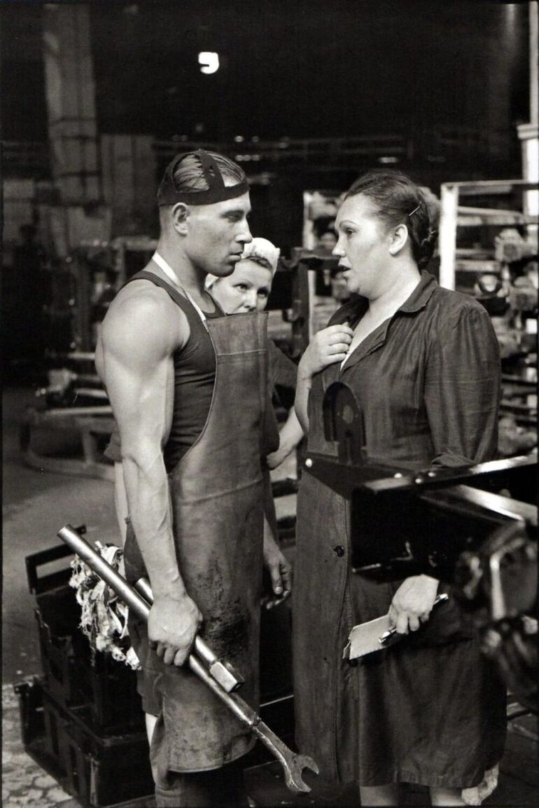 Рабочий и начальник цеха на автомобильном заводе ЗиС, Москва, 1954 год