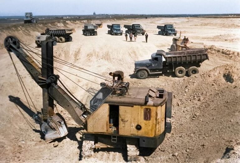 Строительство железнодорожной магистрали Латакия – Алеппо – Камышлы при техническом содействии Советского Союза. Сирийская Арабская Республика, 1975 год.