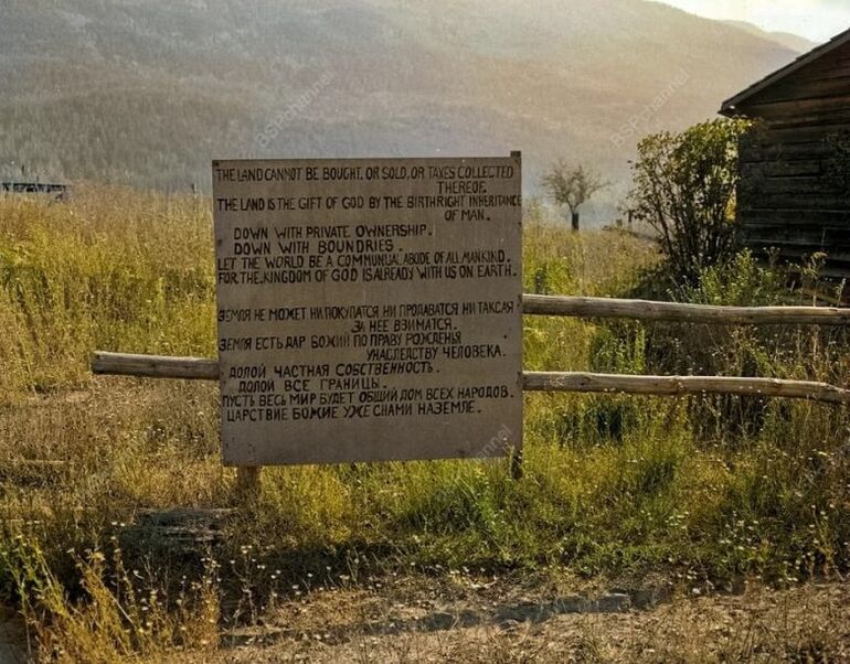 На фотографии — группа духоборов, русских сектантов-мирян, переселившихся из имперской России в Канаду в поисках свободы вероисповедания и уклонения от военной службы. Около 1908–1912 годов тысячи духоборов обосновались в Британской Колумбии, где получили земельные участки от канадского правительства. К 1915 году они уже активно осваивали новую родину: строили дома, возделывали землю, создавали общинные фермы.