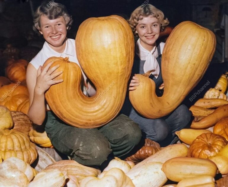 Хизер Хейвуд из Нарромайна и Энн Твиди из Уолган-Вэлли на Королевской пасхальной выставке с гигантскими тыквами «Багл Грамма».