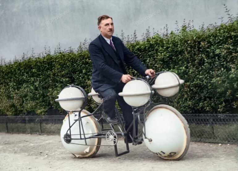 «Цикломер» — велосипед, способный передвигаться по суше и воде с грузом до 120 кг. Париж, 1932 год.
