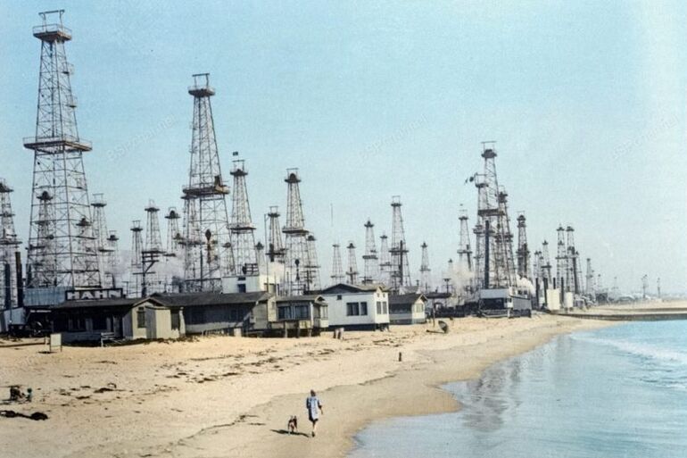 Множество нефтяных вышек на пляже Венис-Бич, Калифорния, США. Начало ХХ века.