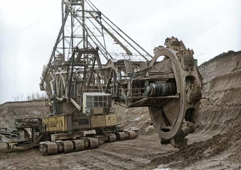 Роторный экскаватор производства ГДР. На одном из рудников Курской магнитной аномалии, 1973 год.