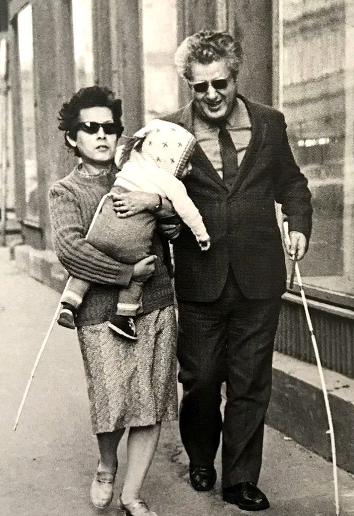 Слепая пара, идущая с ребенком по улицам Будапешта, 1984 год