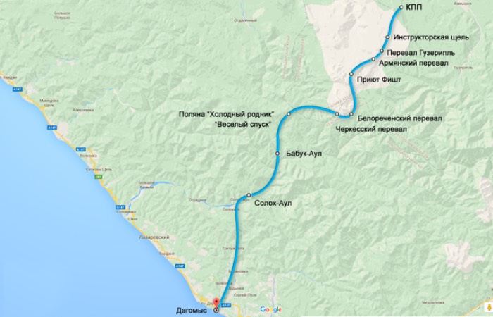 Туристы на автобусе переезжали в поселок Гузерпиль. Там они проводили еще несколько дней, привыкали к местному климату и играли в спортивные игры. После чего их ждала пешая дорога к приюту Армянский, где уже не было комфортных условий для проживания. Туристы ночевали в палатках и в полной мере ощущали все прелести походных туров. Далее их ждало путешествие к приюту Фишт.