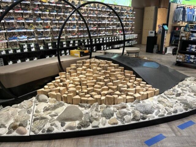12. В этом магазине спортивных товаров можно протестировать туристическую обувь на разных поверхностях.