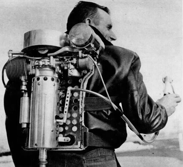 Коньки оснащены почти 9-килограммовым бензиновым двигателем, который носится как рюкзак. Он подключается к правому коньку, приводя его в движение, в то время как левая нога человека находится впереди и управляет им.