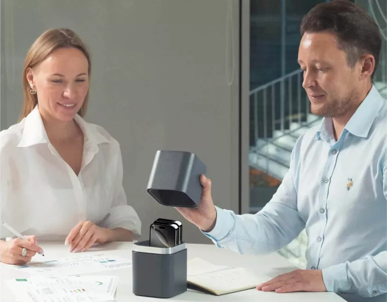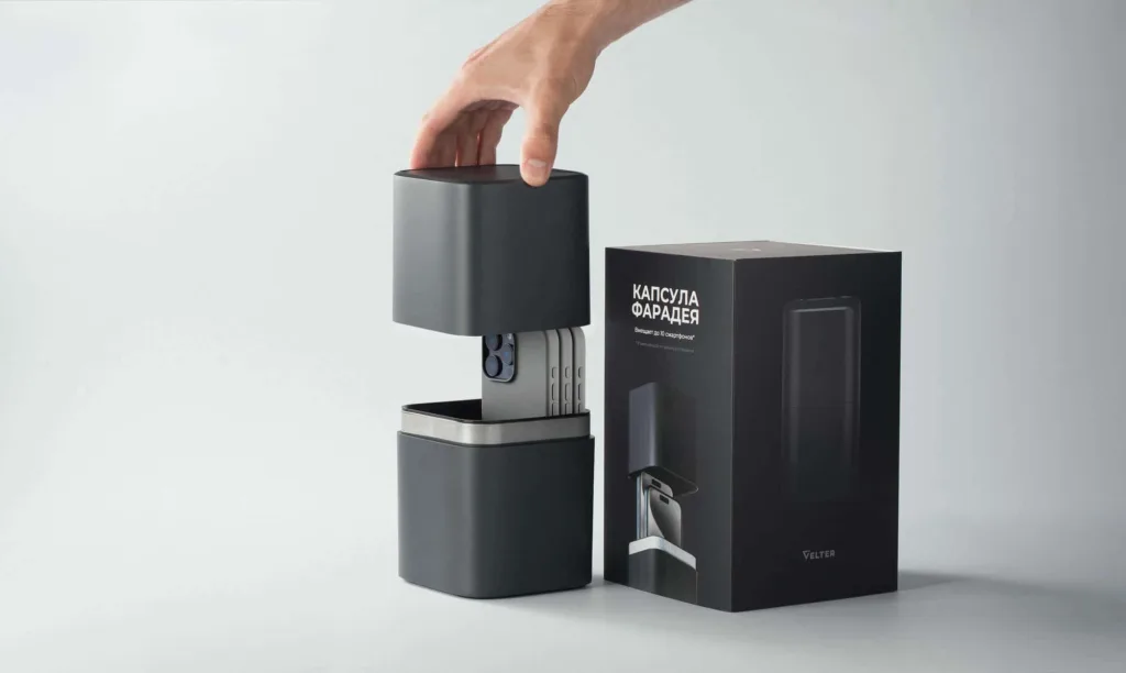 На фото: «Капсула Фарадея» — полностью физически изолирует смартфоны от сети и обеспечивает высокую конфиденциальность переговоров или секретной информации. Источник изображения: компания «Велтер»