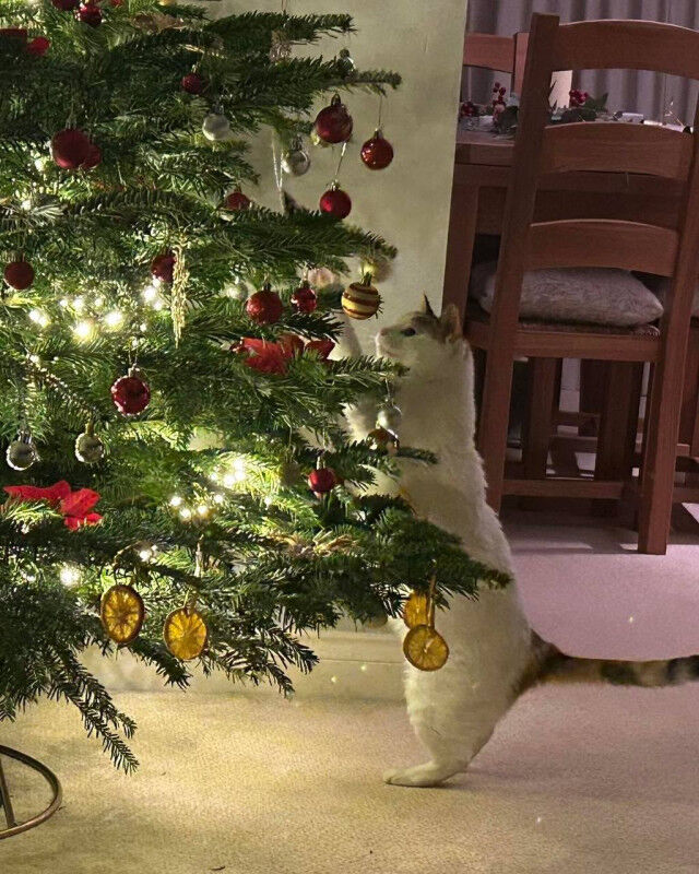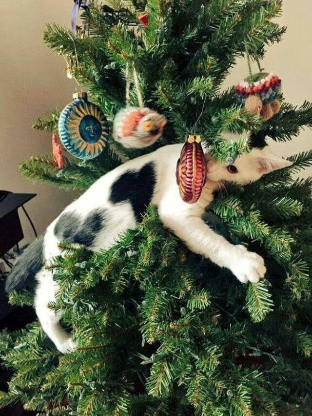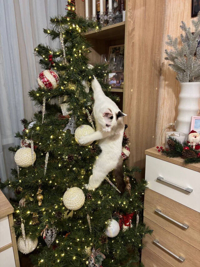 Для всех владельцев котов Новый Год - это совершенно особенное время. Под елкой можно обнаружить не только подарки, но и котов, которые стремятся повалить дерево, как только его увидят. Иногда пушистики притворяются шарами и залезают на ветки, иногда пытаются съесть ветки, искусственные или настоящие, но в покое дерево не остается никогда!