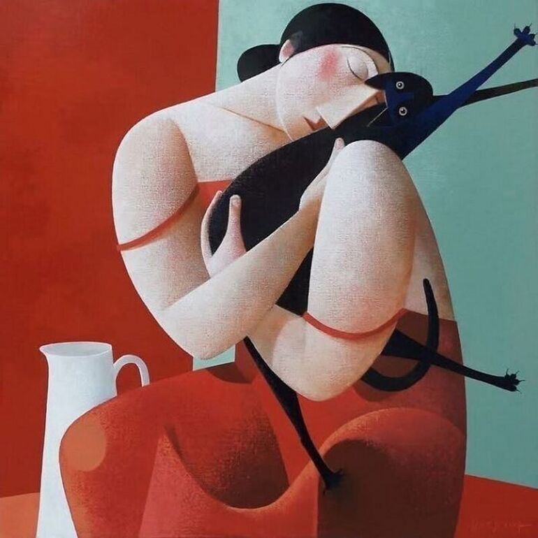 Трогательное полотно «Женщина и кошка» от голландского мастера Питера Харскампа