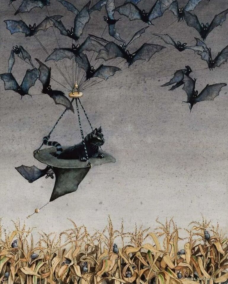 Черный кот спешит к своей хозяйке от Мэгги Вандевалле