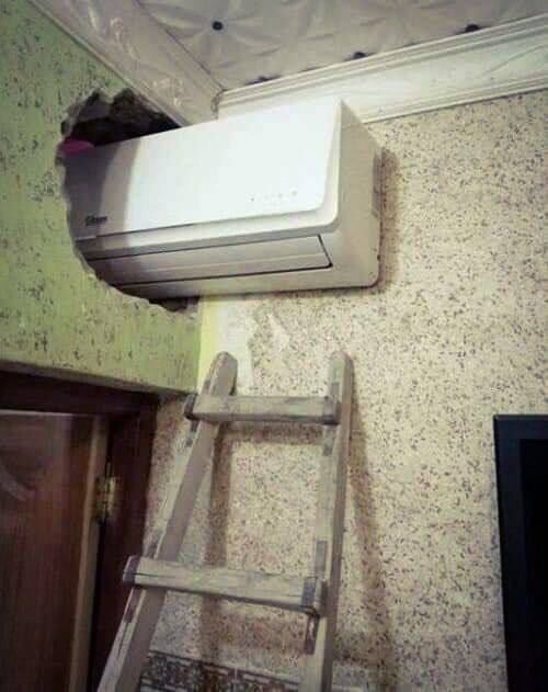 7.Тоже пример малобюджетного ремонта. Необязательно тратиться на два кондиционера, если можно купить кувалду: