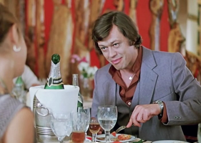Единственное отличие этого эпизода в «Начале» от похожих сцен в других фильмах – Паша, видимо, насмотревшись французских фильмов с галантными кавалерами, трогательно обращается к своему гостю: «Поухаживайте за дамой!», и Аркадий, слегка удивившись, наливает ей в бокал вино.