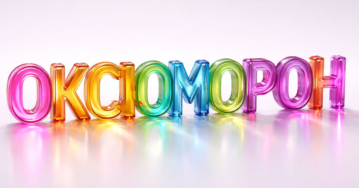 Оксюморон — художественный приём, сочетание противоположных по смыслу слов или противоречащих друг другу понятий: «жаркая зима», «честный жулик», «Старый Новый год» и т. п. Само слово «оксюморон» происходит от двух греческих слов и буквально переводится как «остроумно-тупой», что, разумеется, является оксюмороном.