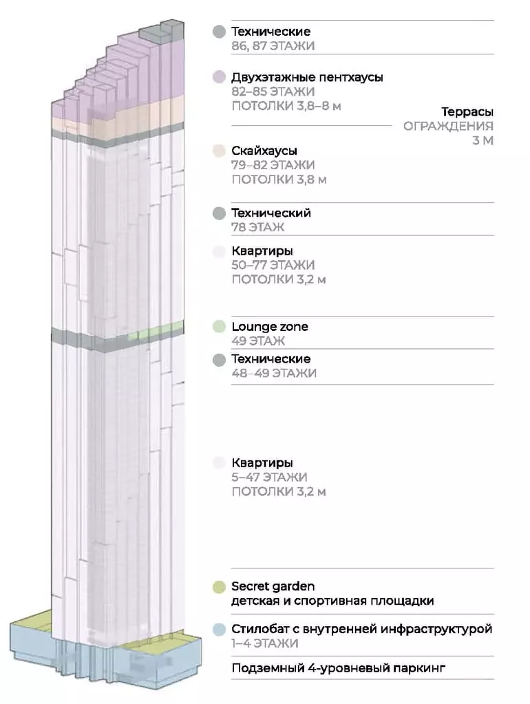 340-метровый «Дом Дау» после завершения строительства в 2027 году станет самым высоким жилым небоскребом России. Здание изначально позиционируется не как смесь жилой и офисной недвижимости, а полностью жилой комплекс. Самыми высокими небоскребами нежилого/смешанного назначения нашей страны в начале 2026 года являются: «Лахта Центр» (462 метра, Санкт-Петербург), «Восток» (в составе комплекса «Федерация», 374 метра, Москва) и «Око» (354 метра, Москва).