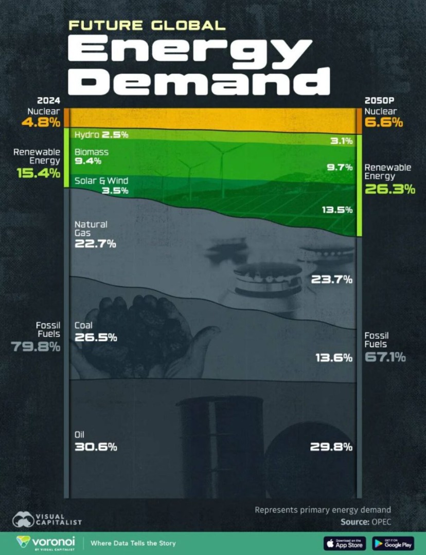 Трансформация энергетики: какое топливо будет доминировать в мире к 2050 году / © Visual Capitalist