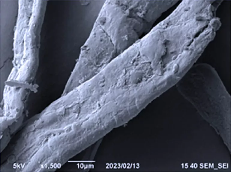 На фото: в начале материала — снимок микрофибриллярной целлюлозы с полистиролом при помощи сканирующей электронной микроскопии (sem), внизу — процесс создания композитного материала на основе микрофибриллированной целлюлозы по новой технологии в РГУ нефти и газа имени Губкина. Источник фото: РГУ нефти и газа имени Губкина